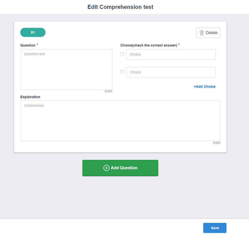 If you have any opinions or requests regarding the comprehension test function, please contact us from here.