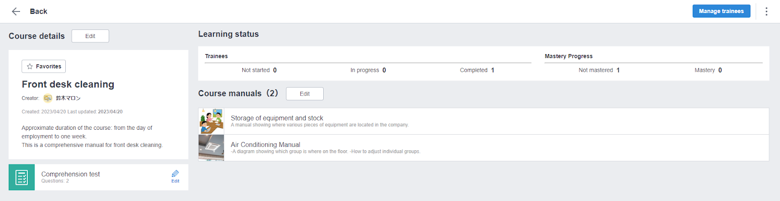 *If you are contracting a plan other than the above, or during a trial before contracting, you can try up to 3 courses and up to 5 users.