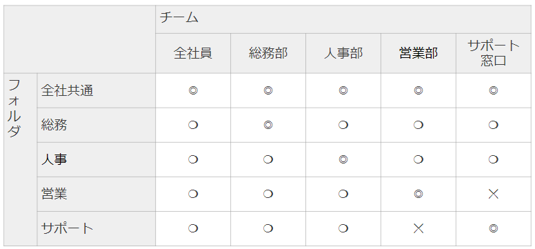 This makes it easy to see at a glance "which folders" "which teams" have "what" permissions for.