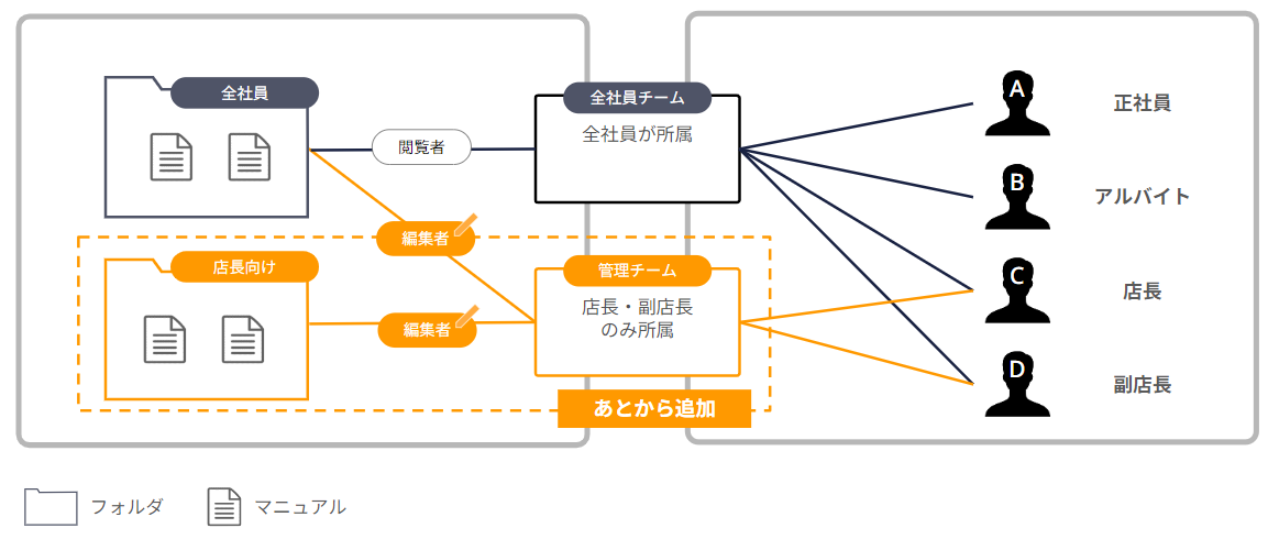 As manuals that should only be shown to specific groups increase, create and adjust folders and teams as needed.
