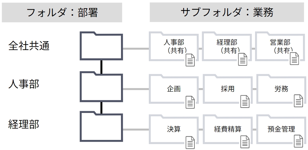 When viewing scope becomes the parent folder, it's good to organize your folder structure plan considering manual types and classifications as child folders (second level and below).