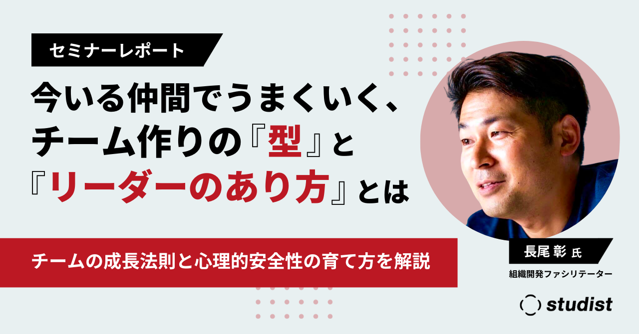 弊社スタディストが、経営者/リーダーの皆様向けに開催したオンラインイベント「今いる仲間でうまくいく、チーム作りの『型』と『リーダーのあり方』とは」にて、組織開発ファシリテーターの長尾彰さんに講演いただきました。