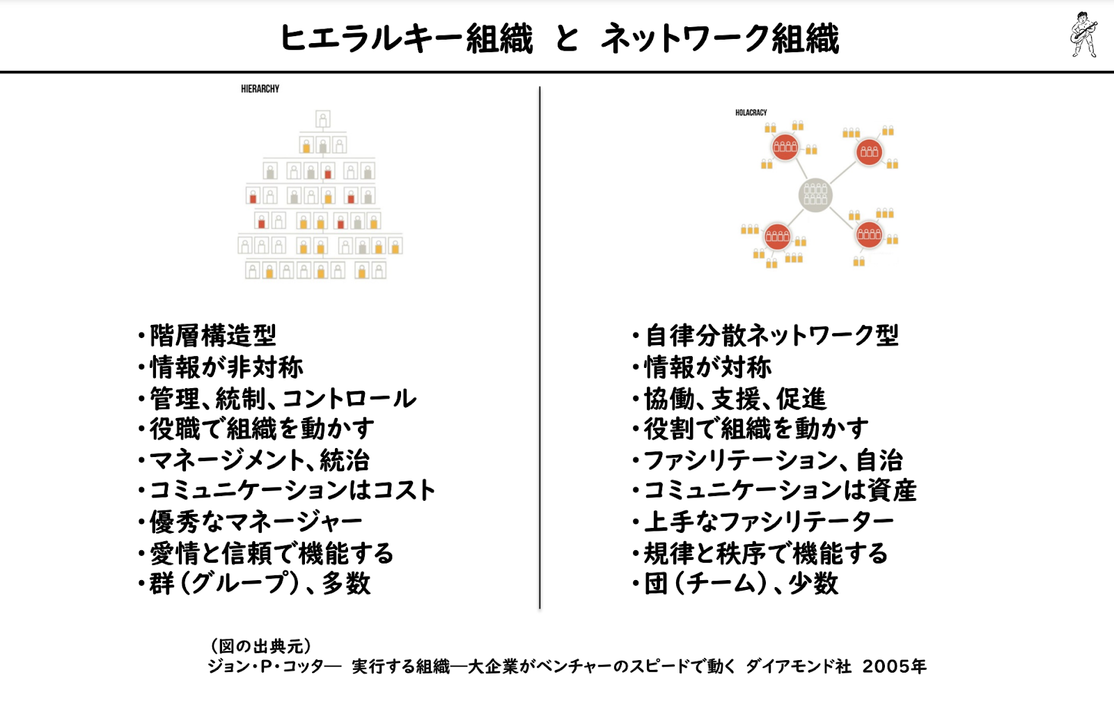 昨今では、「ヒエラルキー型の組織」と「ネットワーク型の組織」が対比されて語られることも増えてきました。