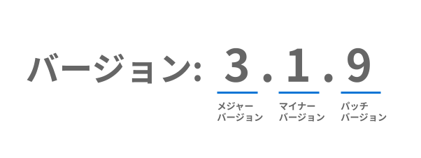 バージョンはドット(.)区切りの3つの数字からなり、それぞれの数字は左から順に次の通り呼称します。