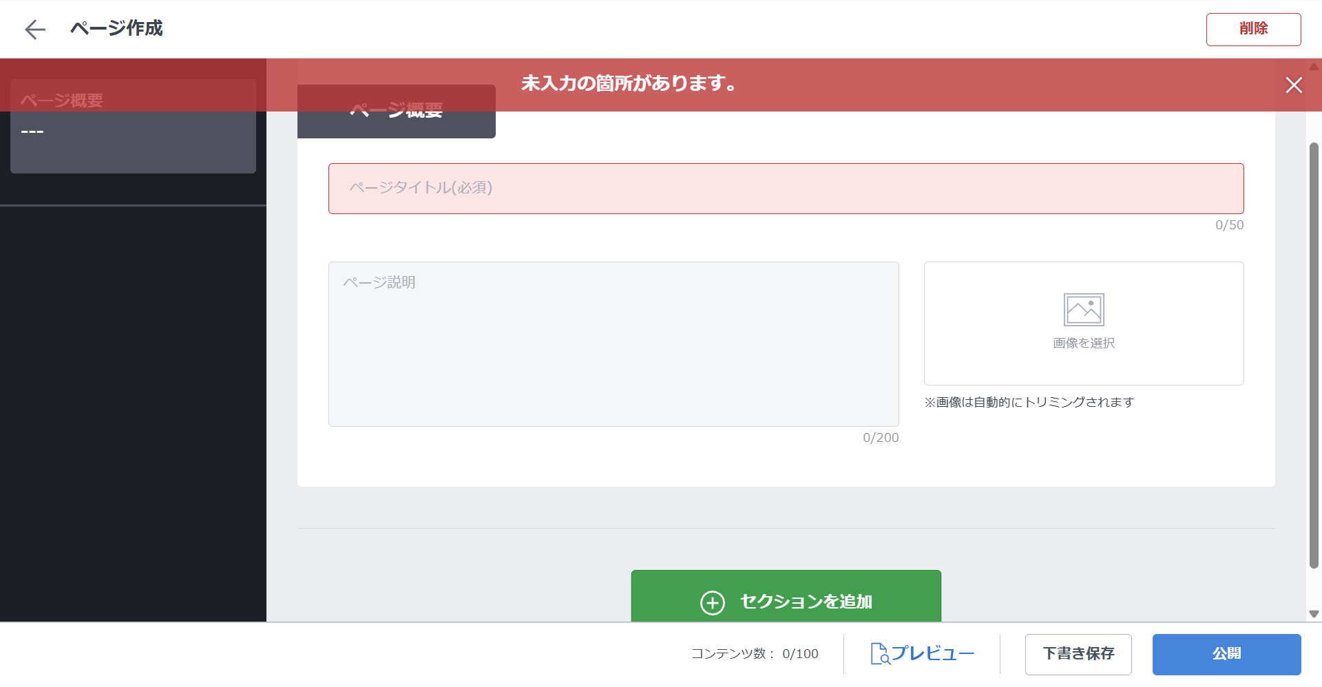 - ページ概要と各セクション、すべてにタイトルが入力されている