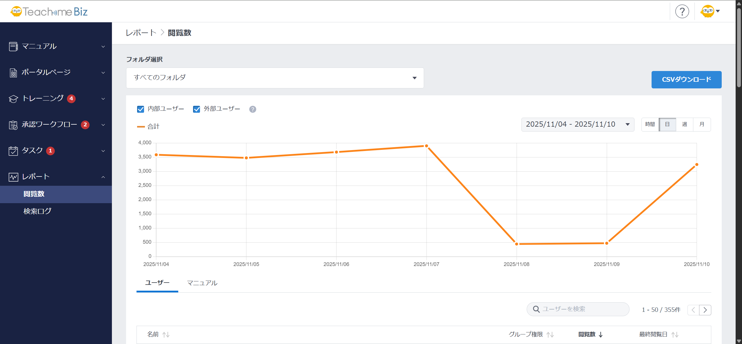 ตรวจสอบสถานะการใช้งานจากหน้าจอรายงาน / เอ็กซ์พอร์ตข้อมูลการเข้าชมคู่มือเป็น CSV