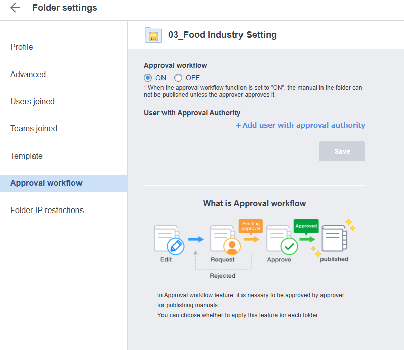 Bật/Tắt và cấu hình cài đặt quy trình phê duyệt.